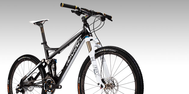 Le modèle RC est équipé d'une fourche Fox Float RL thru axle de 100mm, transmission Sram 2x10 complète et un ensemble de roues Fulcrum Red Metal 3.